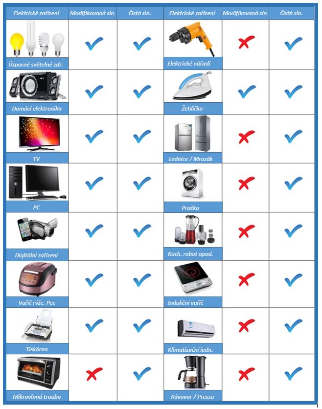 UPOZORNĚNÍ: Váháte mezi použitím sinusového měniče nebo měniče s modifikovanou sinusoidou? Mezi obrázky naleznete tabulku s doporučeným výkonem měničů. Od 14.9.2015 již nebudeme brát při reklamaci zřetel na přetížený měnič.