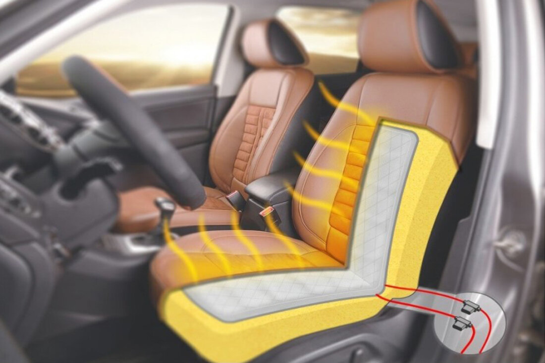 Karbonové vyhřívací podložky se montují pod čalounění sedáku a opěráku. Univerzálním ovládacím tlačítkem, lze nastavit teplotu vyhřívání ve dvou úrovních. Vyhřívání je regulováno termostatem vestavěným každém v sedadle samostatně.