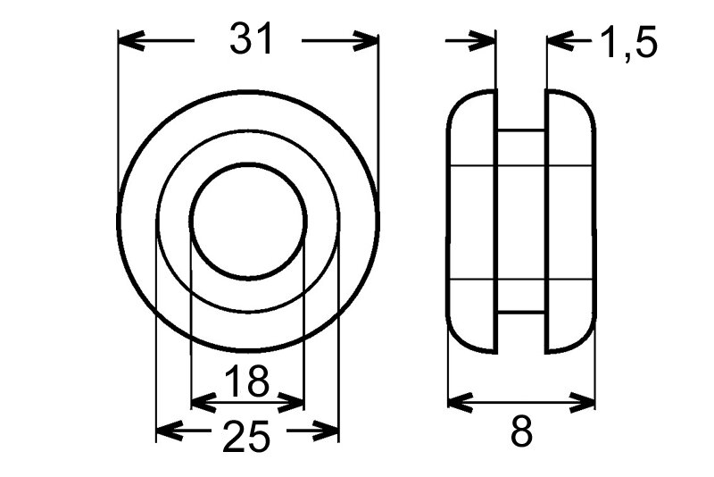 Gumová průchodka kabelů Ø otvoru 25,1 mm / kabel Ø 18,9 mm, měkčené PVC, černá barva