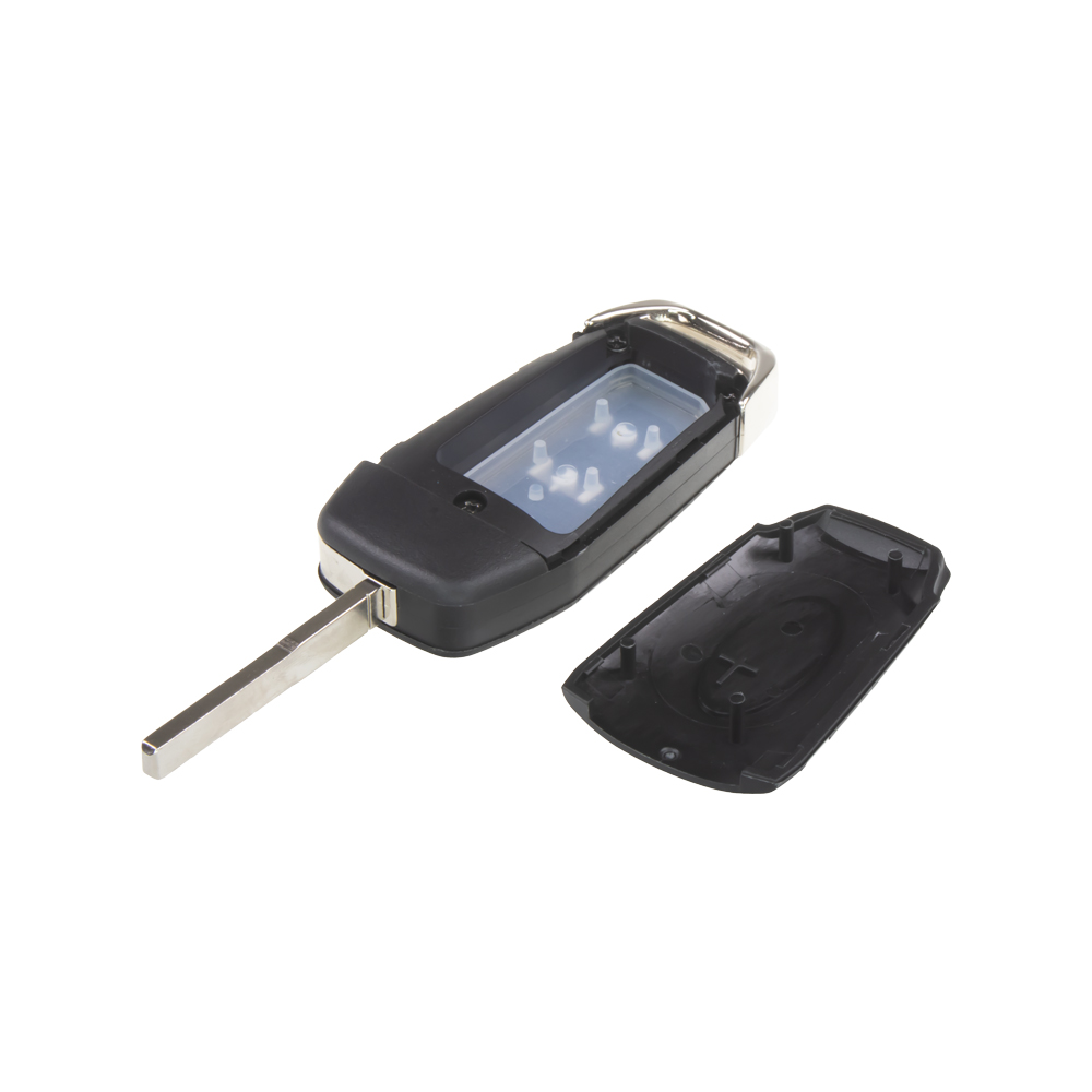 Náhradní obal klíče pro vozy Ford s 3-tlačítkovým ovladačem (bez elektroniky a čipu imobilizéru). Do klíče je nutno vložit z původního klíče elektroniku dálkového ovládání a čip imobilizéru (transpondér), planžetu klíče je třeba nechat vyfrézovat podle tvaru originálního klíče. Tento obal má držák baterie na desce plošných spojů (není součástí obalu). OEM označení: 108TAAFL3T-15K601-AC