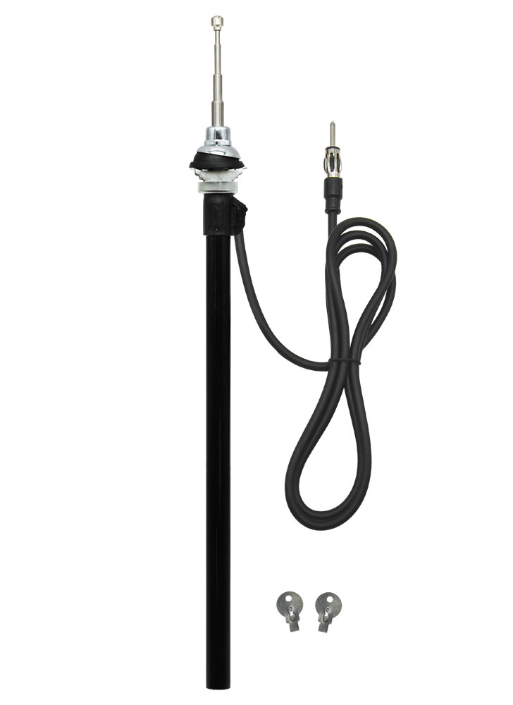 - teleskopický prut 4díly- nastavitelný sklon základny: 0-30°- délka prutu: 1m- délka svodu:1,2m- kabel RG-58- konektor u autorádia: DIN- barva: chrom
