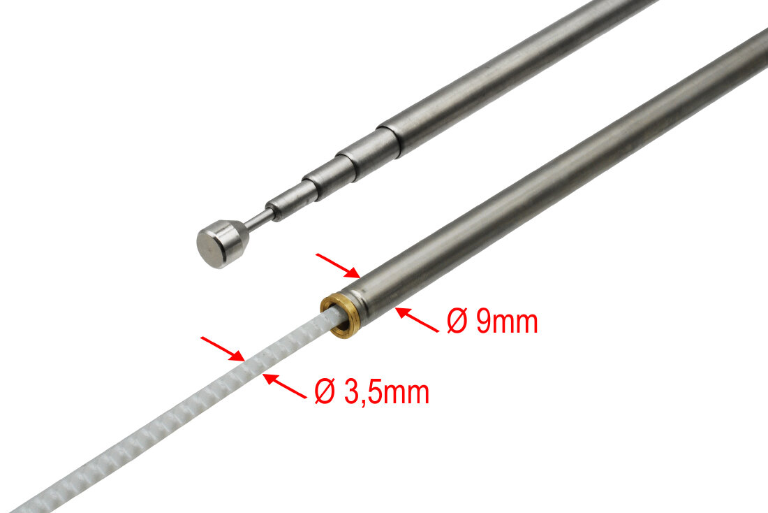 - teleskop 5 dílů- délka prutu: 89cm- barva stříbrná (chrom)- průměr prutu: 9mm- průměr bovdenu: 3,5mm