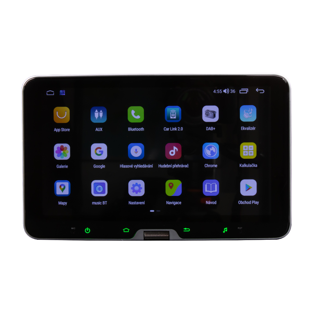 1DIN multimediální autorádio s 10' LCD na kloubu a rotačním ovladačem s operačním softwarem Android, Wi-Fi, GPS, Bluetooth, CarPlay, Mirror link, 4G. Rádio je vybaveno univerzálním zakončením ISO, proto je potřeba zajištění kabelové redukce 21XXX nebo 52sXX pro ovládání z volantu pro daný vůz, nebo použít kabelovou redukci s CAN jednotkou 51s... (omezený výběr značek: Škoda, VW, Seat, Mercedes, Peugeot, atd. ...).