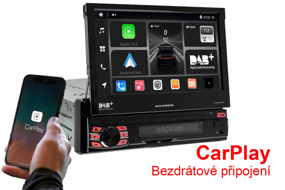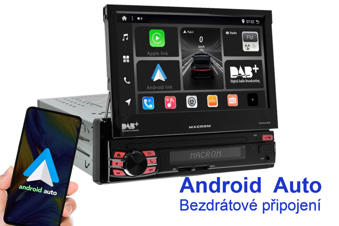 Multimediální systém se 7" motorizovaným displejem, ANDROID 13, bezdrátovým CarPlay a Android Auto a integrovaným DAB přijímačem