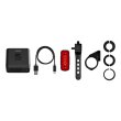 Technické parametry: • jmenovité napětí: 3,7 V • světelný tok: 1000 lm • teplota chromatičnosti: 6200 K • technologie: LED • barva světla: studená bílá • doba nabíjení: přední světlo - 3 h / zadní světlo - 2 h • doba svícení: až 10 h (přední světlo) = eko (25%) - 10 h / nízký výkon (50%) - 5 h / max. výkon (100%) - 2 h; zadní světlo až 17 h (33 h v režimu blikání) • baterie: Lithium Ion • druh ochrany: IP54 • typ nabíjení: USB-C • barva: černá / červená