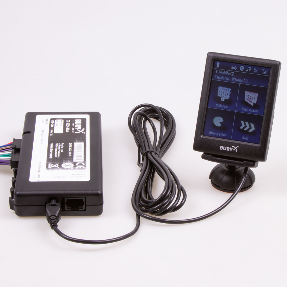 Bluetooth handsfree sada BURY CC9056 Plus s 2,8" TFT displejem určena pro bezpečné a komfortní telefonování během řízení. Zařízení je určené na instalaci do vozidla odborným servisem, připojuje se k existujícím reproduktorem audiosoustavy vozidla. K zařízení je možné připojit a používat 2 telefony současně (Multipoint), je kompatibilní s různými výrobci telefonů.