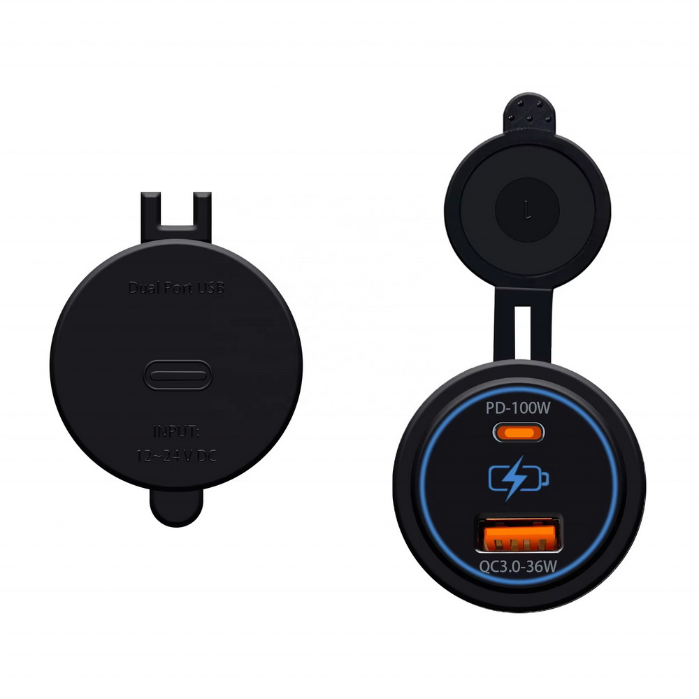USB QC3.0 + USB-C 100W/20V zásuvka 12/24V