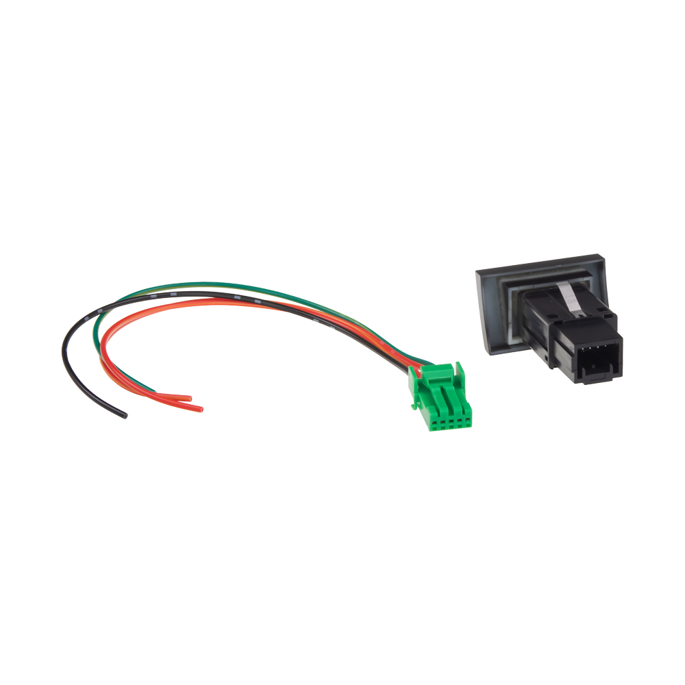 Technické parametry: • rozměry přední části: 43 x 25 mm • do otvoru: 23 x 17 mm • modrá kontrolka • připojení vodičů: - černý vodič: zem - červenožlutý vodič +12V podsvícení (kontrolka) - červenožlutý + zelenožlutý: spínací kontakt