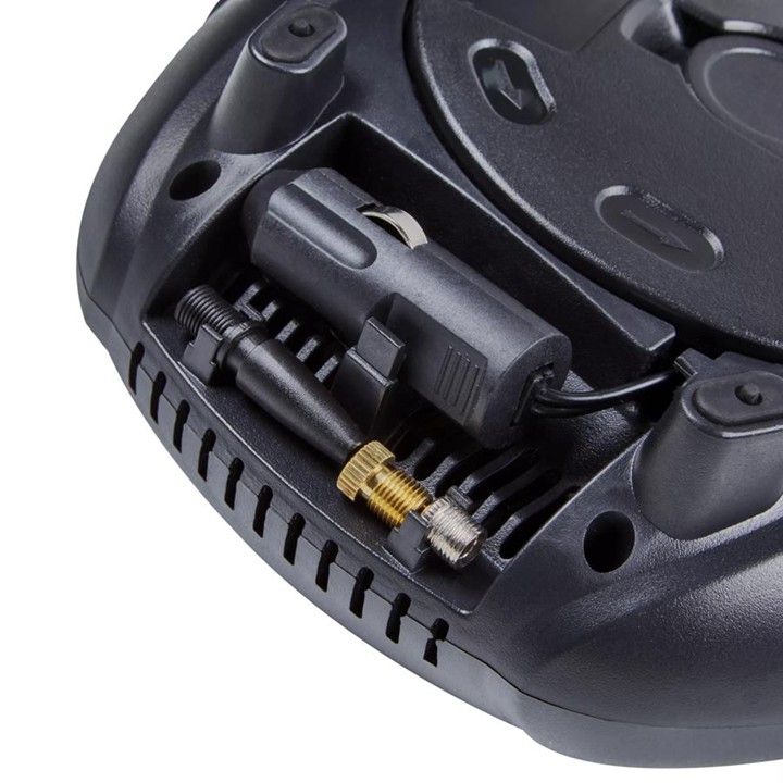 Technické parametry: • velikost zobrazovače tlaku: 40 mm x 35 mm • měřicí jednotky: PSI / kPa / bar • přesnost (bar): ± 0,1 bar • průtok (l / min): tbc • doba nafouknutí: 3,5 min • max. tlak: 5,5 bar • délka vzduchové hadice: 50 cm • délka napájecího kabelu: 3 m • zdroj energie: 12 V (zástrčka s pojistkou) • provozní napětí: 12 V • jmenovité napětí: 11,1 V • jmenovitý výkon: 120 W • rozměry: výška 180 mm / délka 197 mm / šířka 88 mm • hladina hluku (dB): 90 dB • doporučeno pro použití s: auto / jízdní kolo / člun • typ zobrazovače tlaku: digitální • pojistka: 10 A • příslušenství: adaptéry pro - míče, nafukovací matrace a kola