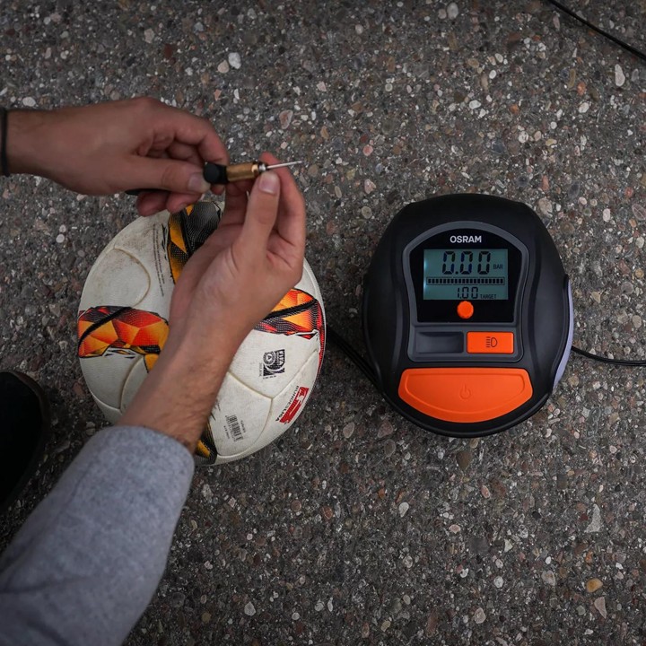 Rychlý kompresor s navíjecím kabelem OSRAM TyreInflate 1000 je rychlý digitální kompresor s podsvíceným digitálním displejem pro snadné a přesné odečty tlaku. Zahrnuje funkci automatického zastavení pro získání přesně požadovaného tlaku potřebného k přesnému nafouknutí pneumatik. Automatické nastavení na TyreInflate 1000 se nastavuje neuvěřitelně snadno - stačí otočit knoflíkem na požadovaný tlak, kliknout pro nastavení a poté stisknout start. Jakmile je dosaženo správného tlaku, kompresor se automaticky zastaví. Navíjecí napájecí kabel usnadňuje sbalení kompresoru. Doba nafukování cca 2,5 minuty, vás dostane zpět na cestu velmi rychle. Napájecí kabel je dostatečně dlouhý (3,5 m), aby dosáhl na všechny pneumatiky vašeho vozidla. Velké tlačítko zapnutí / vypnutí a směrové světlo LED usnadňují používání TyreInflate 1000 ve tmě a nouzových situacích - takže jste připraveni na vše, co se může na silnici stát. Zahrnuje třídílný adaptér pro jízdní kola, míčky a nafukovací čluny.