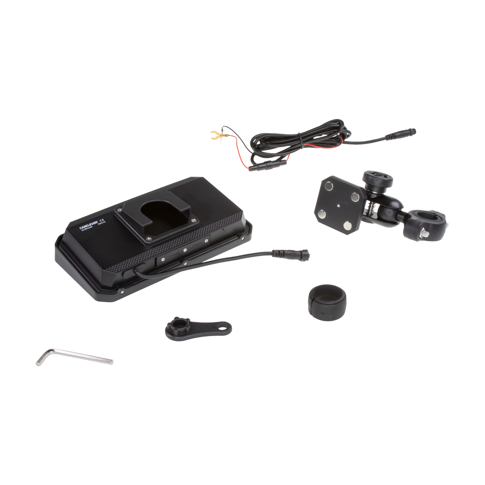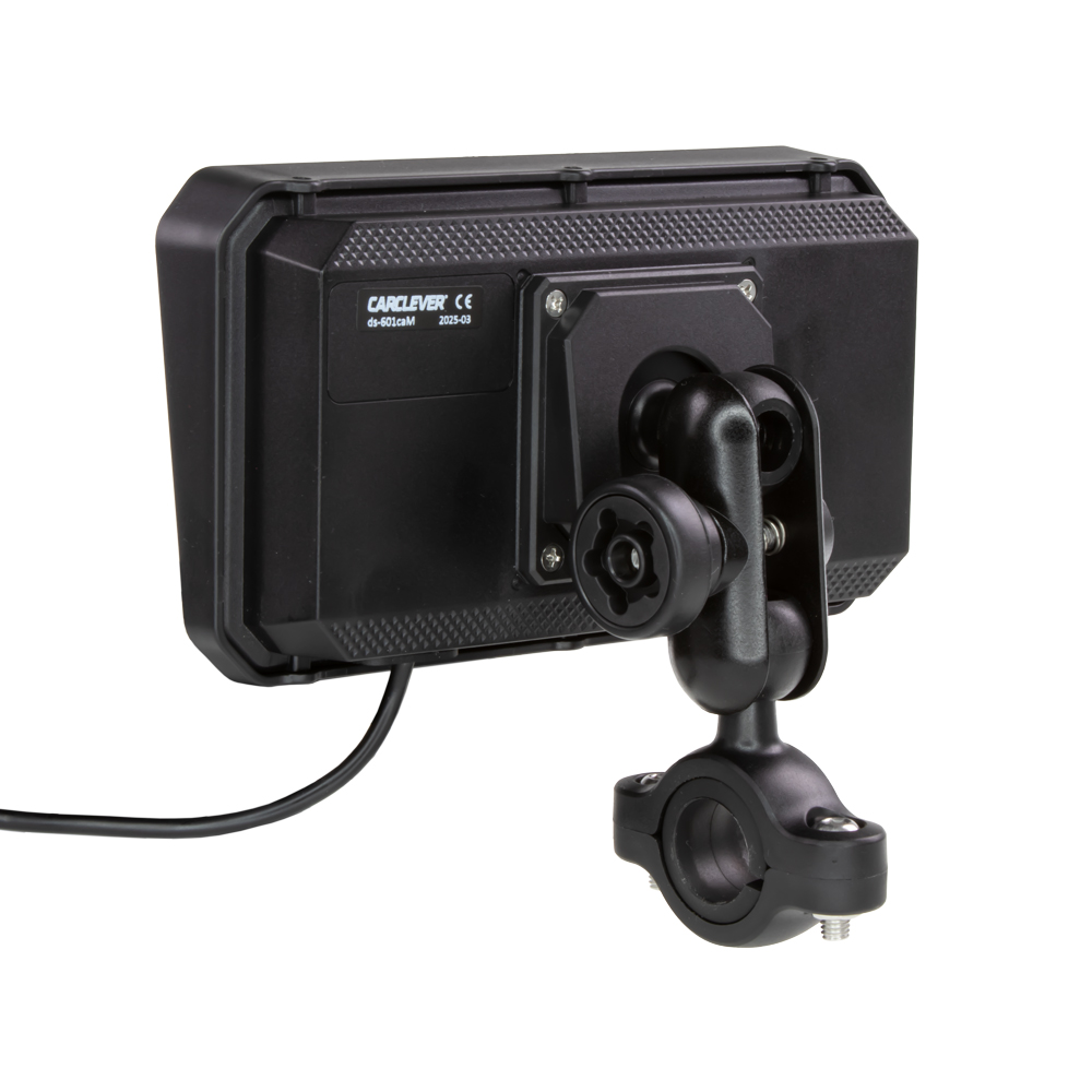 Monitor s dotykovou 6" obrazovkou na motocykl (Plug and Play, vhodné pro všechny motocykly) je dodáván se silným kloubovým držákem s možností instalace na řídítka.
