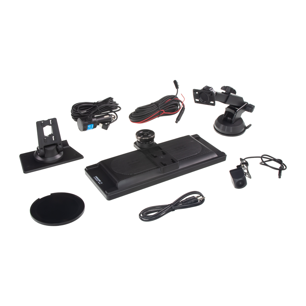 Součást balení: • monitor • držák pro pevnou montáž + oboustranná páska • držák s přísavkou • podložka pod přísavku • napájecí kabel s CL koncovkou • zadní kamera • AUX kabel (Jack 3,5 mm / Jack 3,5 mm)