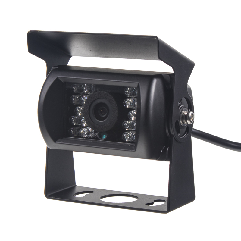 Kamera CMOS s IR světlem, vnější, určená pro montáž především na nákladní vozy, autobusy, karavany či dodávky. Propojení 4-PINovým kabelem.