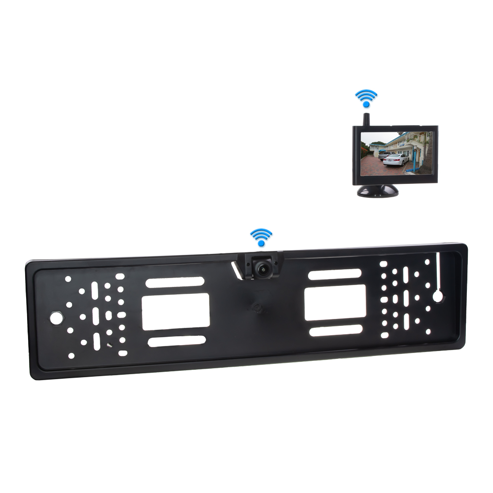 Sada LCD monitoru 4,3" a kamery integrovanou do SPZ rámečku s bezdrátovým digitálním přenosem signálu. Digitální kódovaný přenos signálu zajišťuje velmi kvalitní přenos signálu, odolný jakémukoliv rušení a výpadkům. Hlavní výhoda tohoto systému spočívá ve velmi jednoduché montáži bez nutnosti tažení kabelů a možnosti napárování 1 kameru.