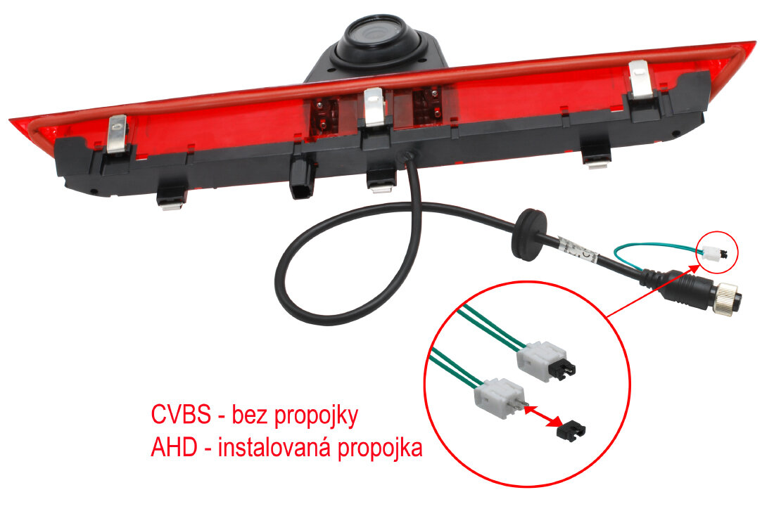 AHD / CVBS parkovací kamera integrovaná ve třetím brzdovém světle instalovaném v zadních křídlových dveřích.