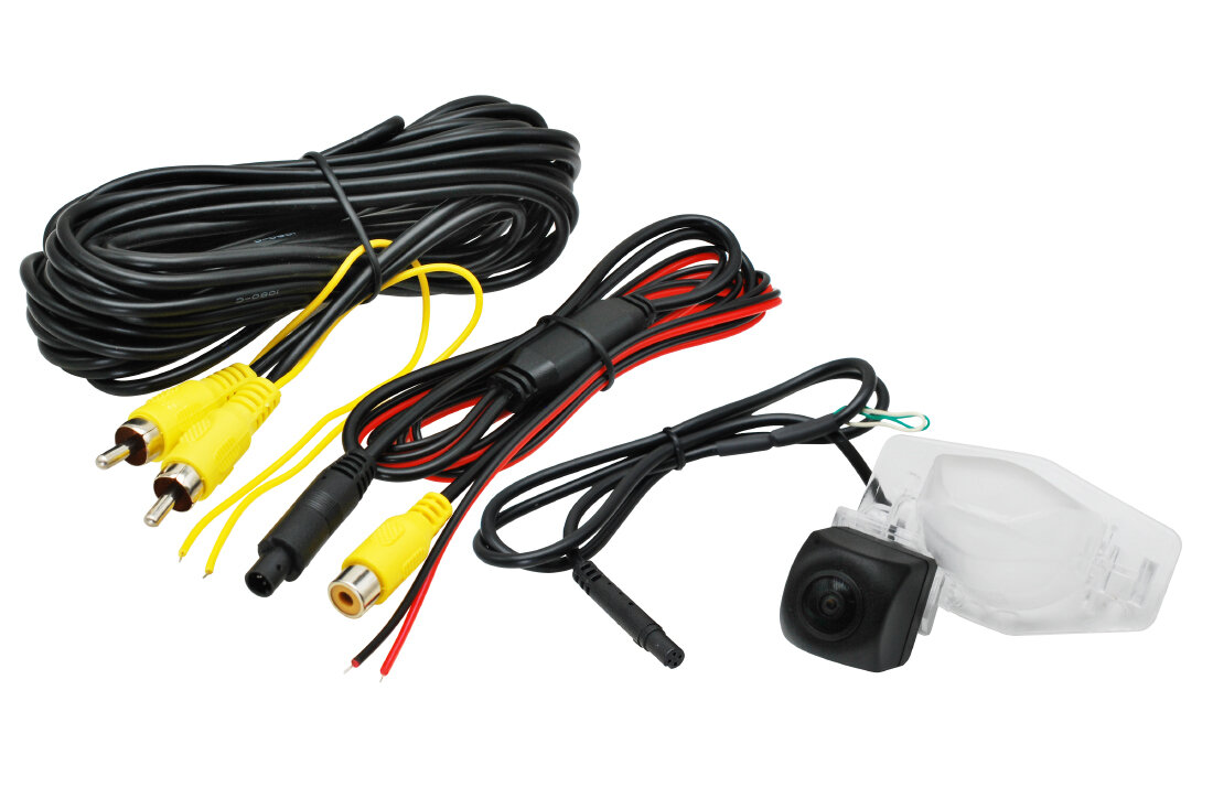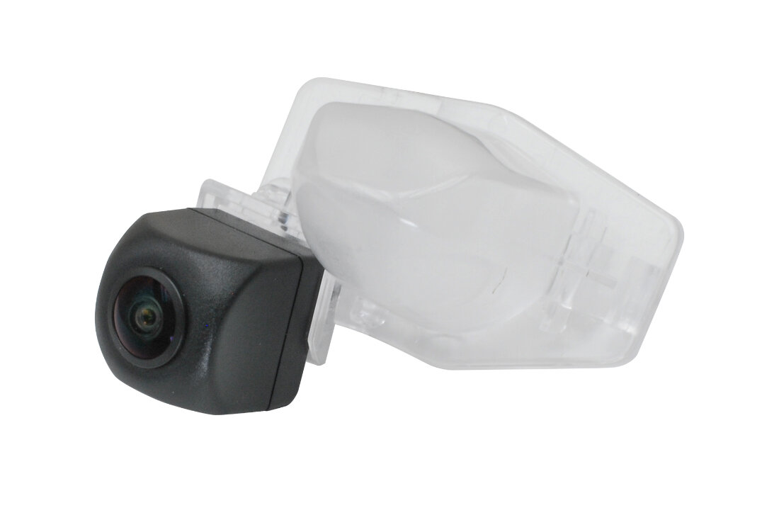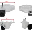 CMOS parkovací kamera pro instalaci do lampy pro osvětlení zadní registrační značky. Součástí kamery je průhledný kryt pro krytí původní žárovky osvětlující registrační značku.