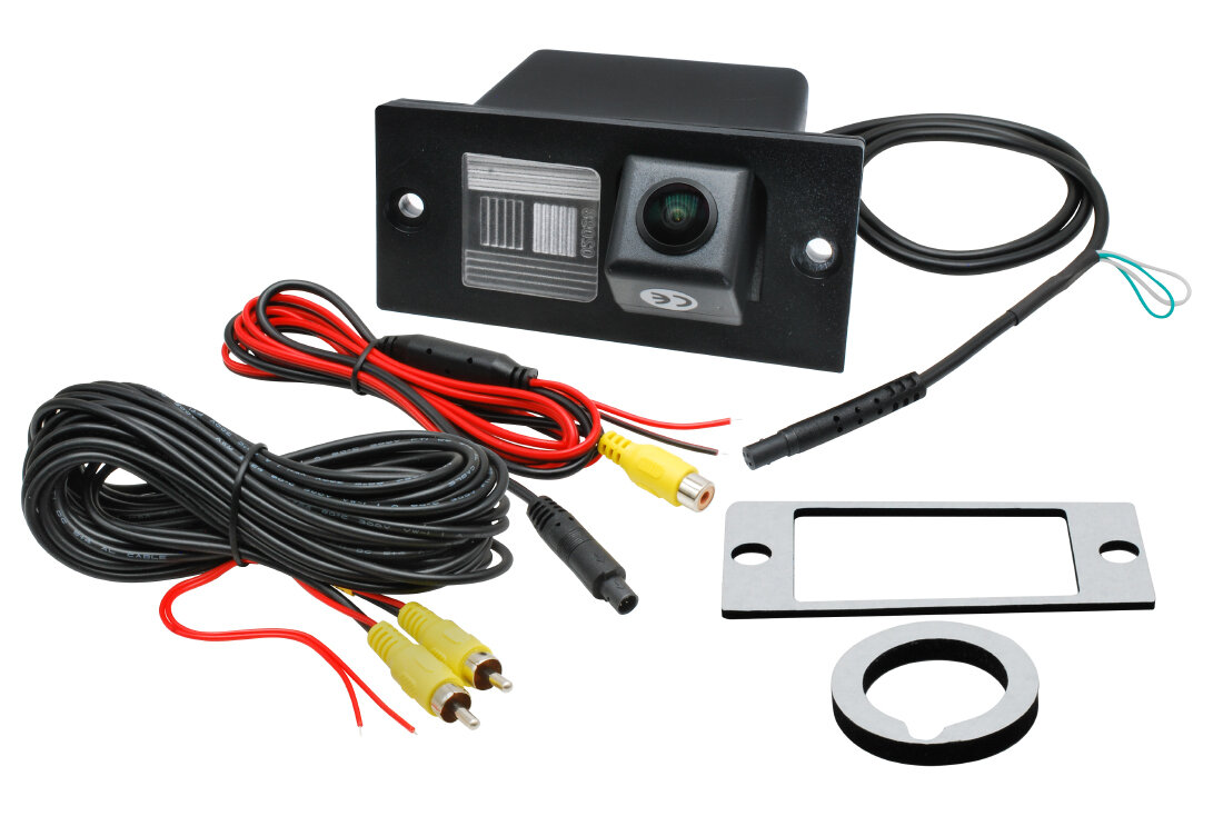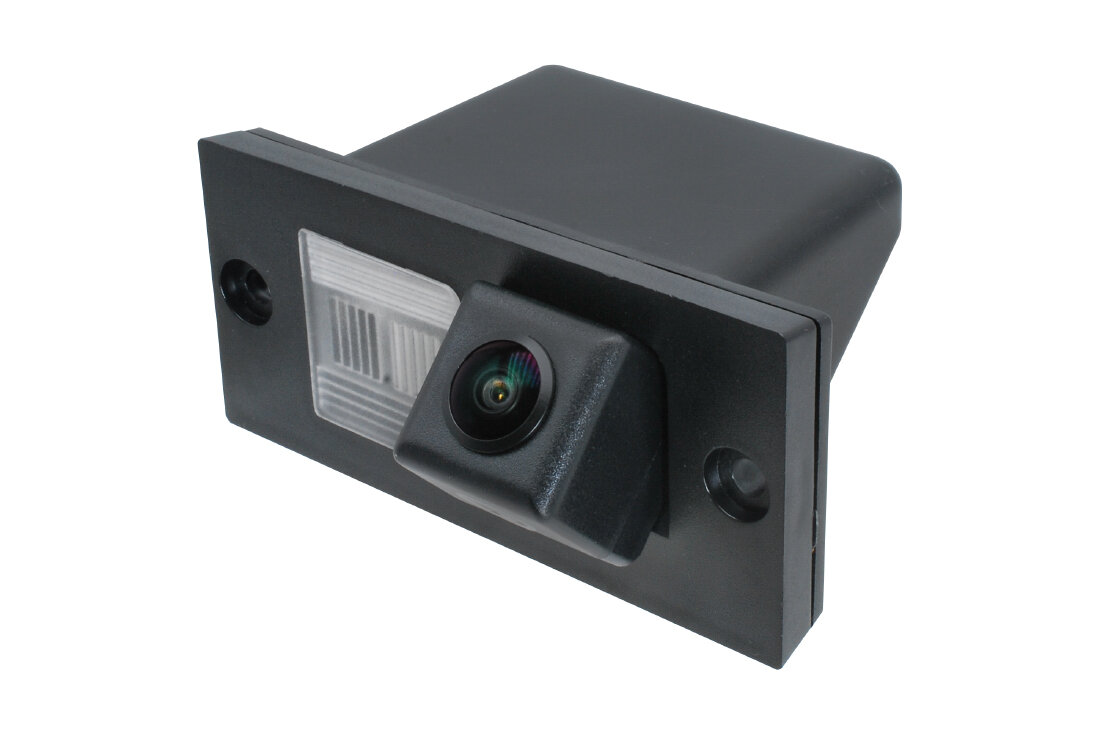 CMOS parkovací kamera pro instalaci do lampy pro osvětlení zadní registrační značky. Součástí kamery je místo pro umístění patice se žárovkou z původního světla pro registrační značku.