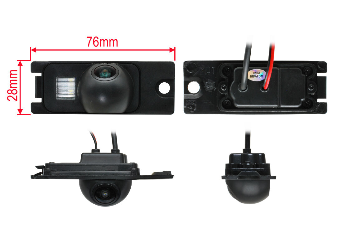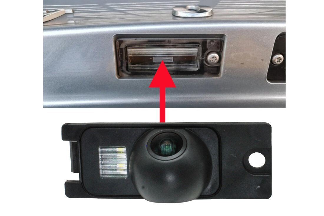 CMOS zadní parkovací kamera pro instalaci do otvoru pro originální parkovací kameru. Součástí kamery je LED světlo nahrazující původní osvětlení.