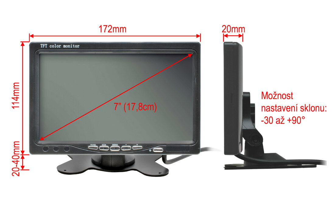 - rozměry monitoru vestavěného v rámečku do opěrky: 193 x 134 x 25mm (Š x V x H)