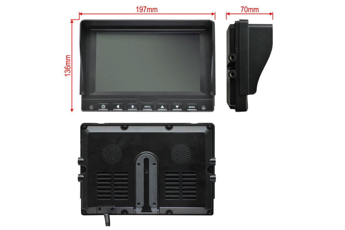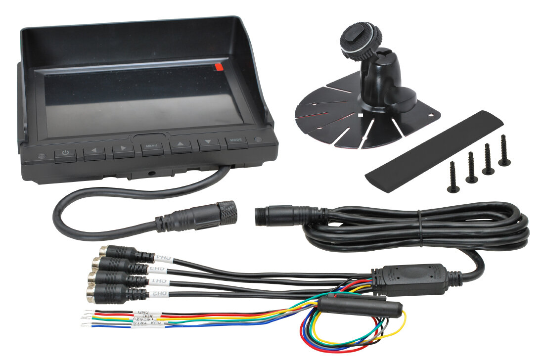 Tento 7″ (17,8 cm) monitor formátu 16 : 9 nabízí praktické řešení pro vozidla a mobilní aplikace, kde je potřeba zobrazit více kamer najednou a zároveň je zaznamenávat. Disponuje čtyřmi video vstupy s podporou AHD 1080p, nově i klasických PAL/NTSC systémů.