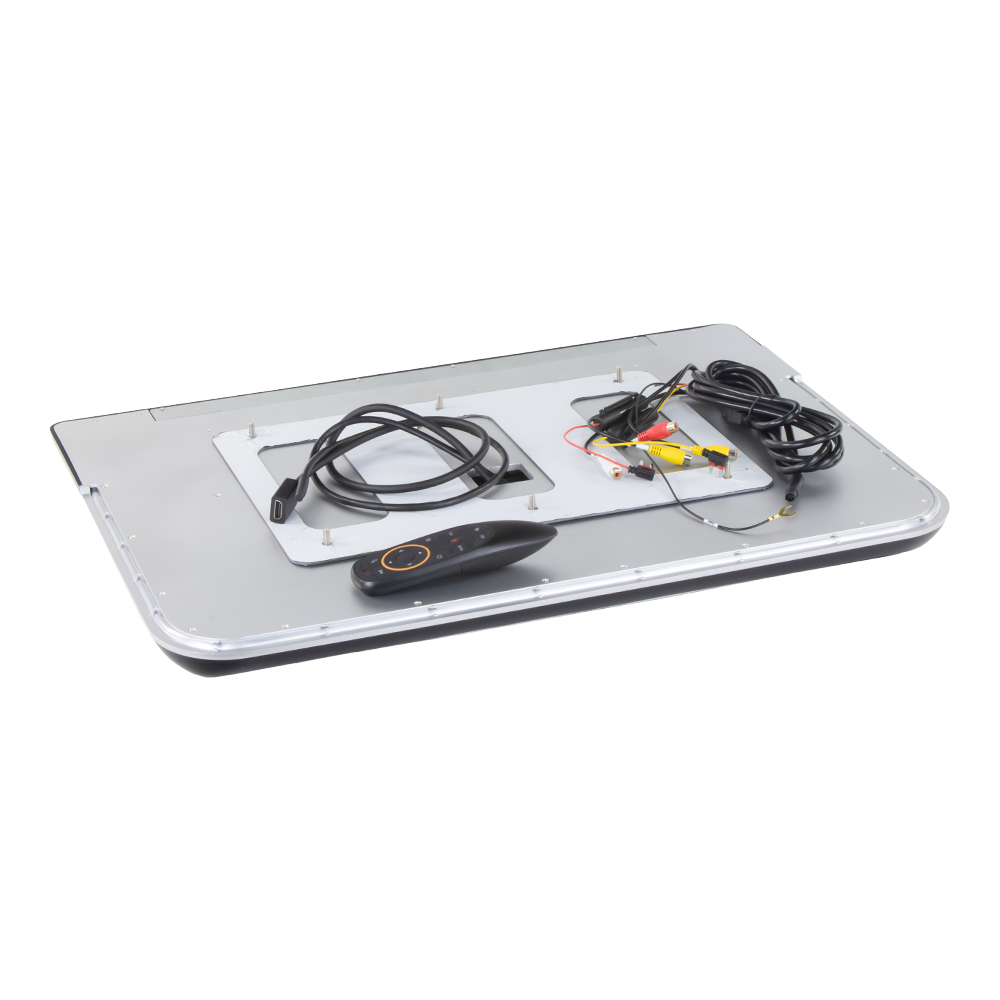 Kvalitní plochý stropní výklopný LED LCD monitor 22" s OS Android, HDMI vstupem, čtečkou USB se zobrazením 16:9, dekorativním osvětlením (multicolor). K monitoru je možné připojit libovolný externí zdroj kompozitního video signálu (např. DVD, video, kamera ....) RCA + HDMI vstup. Monitor je pro pohodlné ovládání vybaven dálkovým ovládáním s pohybovým snímačem.
