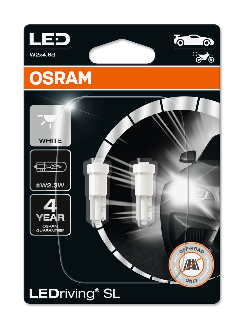 Vhodná náhrada LED za T5 (např. W2,3W) LEDriving SL T5 nabízejí moderní a intenzivní světlo s teplotou chromatičnosti až 6000 K. Tyto náhradní žárovky jsou vhodné pro všechny běžné patice žárovek T5 (npř. ECE W2,3W). Ve srovnání se standardními žárovkami spotřebují tyto retrofitové žárovky až o 80% méně energie. Tyto produkty nemají schválení ECE a nesmí být používány na veřejných komunikacích ve vnějším osvětlení vozu!