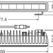 Technické parametry: • jmenovité napětí: 12 V / 24 V • jmenovitý výkon: 29 W • testovací napětí: 13,5 V • světelný tok: 2350 lm • vzdálenost s intenzitou osvětlení 1lx: 210 m • typ světelného kužele: COMBO (kombinovaný) • teplota chromatičnosti: 6000 K • váha výrobku: 700 g • rozměry: šířka 62 mm / délka 350 mm / výška 38 mm • počet LED v modulu: 12 • životnost Tc: 5000 hr • záruka: 5 let • technologie: LED • druh ochrany: IP69K • standardy: ECE R10, R112 • povolení – schválení: homologace E4 • ECE reference number: 12,5