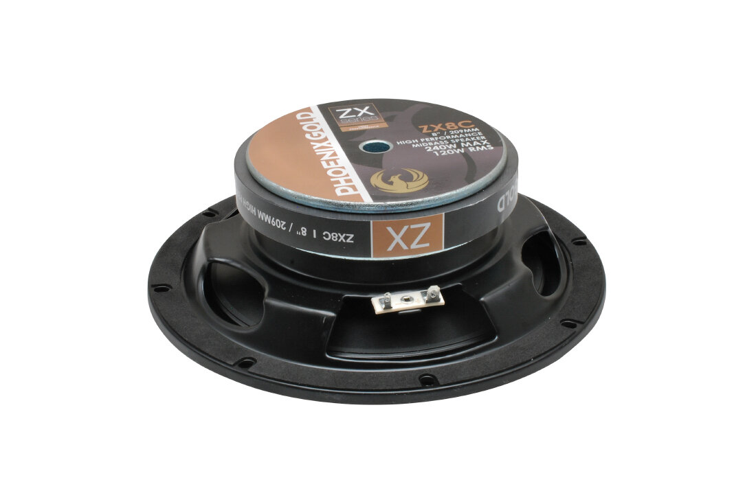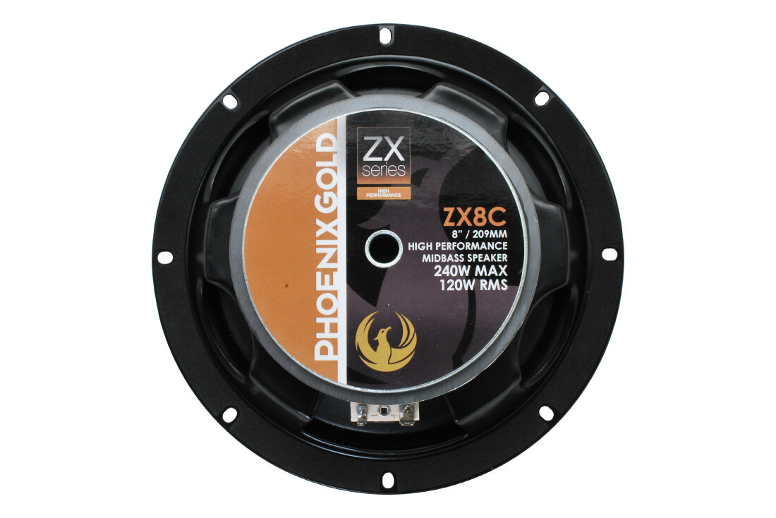 ZX8C 8″ (200mm) středobasový woofer spojuje odolnost s vynikajícím zvukovým výkonem. Díky kompaktní montážní hloubce pouhých 60 mm se hodí do široké škály vozidel. Prodává se v páru a je ideální pro použití v 2pásmových i 3pásmových systémech.