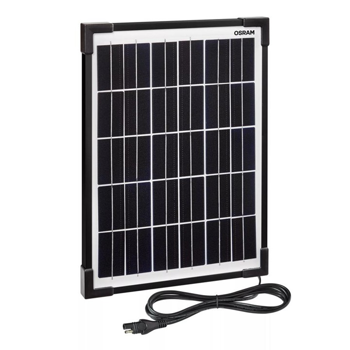 Údržba autobaterií využívající solární energii U moderních vozidel dochází k malému, ale stálému vybíjení baterie. Jsou plná elektrických systémů, které neustále pracují, i když není zapnuté zapalování. Alarmy, imobilizéry a hlídání zámků jsou příklady systémů pracujících na pozadí, které mohou způsobovat vybíjení baterie, i když vozidlo není používáno. OSP1000 je solárně napájený udržovač akumulátoru pro vozidla s napětím 12 V - nízkoemisní a ekologičtější způsob údržby akumulátoru vozidla, které se nepoužívá pravidelně. Ideální pro sezónně používaná vozidla, jako jsou karavany, klasické automobily a motocykly. Dodává se s DC zástrčkou a klipy na baterii, funguje i při zatažené obloze a je voděodolný s krytím IP65. Ochrana proti přepólování zabraňuje poškození, pokud jsou svorky připojeny k nesprávným pólům baterie.
