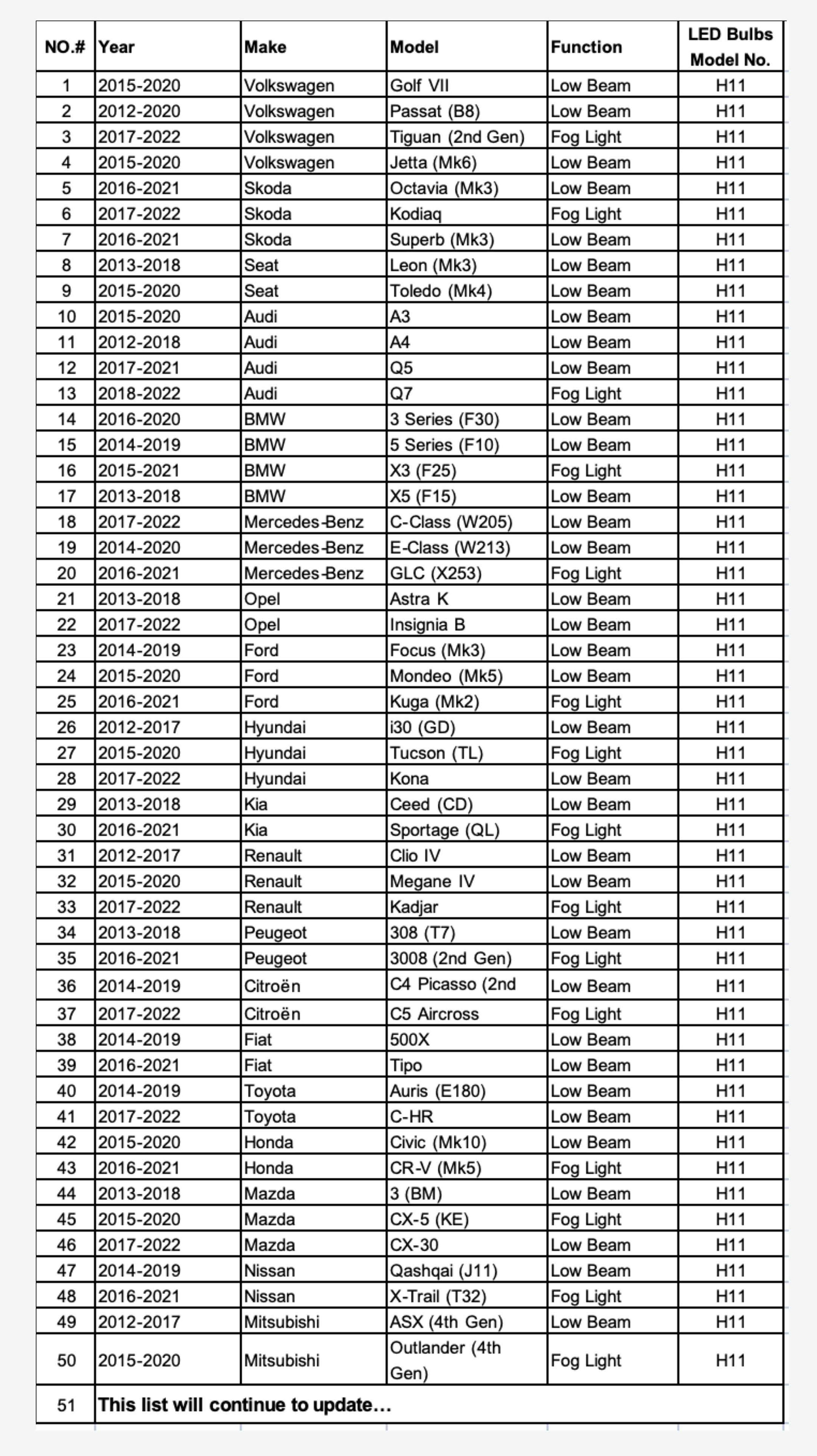 Technické parametry: • patice: H11 • typ použití: hlavní světlomet / denní svícení • počet led čipů: 2 ks GC-1860 • jmenovité napětí: DC 9 V - 18 V • pracovní napětí (test): 13,5 V • proudový odběr: 1,5 A ± 0,15 A při 13,5 V • příkon: cca 20 W • světelný tok: 2700 LM (1 set) • barevná teplota: 5500 K (studená bílá) • chlazení: ventilátorem • vyzařovací úhel: 360° • polarita: NE – bez polarity (lze zapojit oběma směry) • materiál patice: kov, patice není stavitelná • homologace: ECE R10/R37 = vhodné jako náhrada halogenu • rozměr žárovky: ø 14,9 mm / délka 66,9 mm • balení obsahuje 2 ks = cena za pár