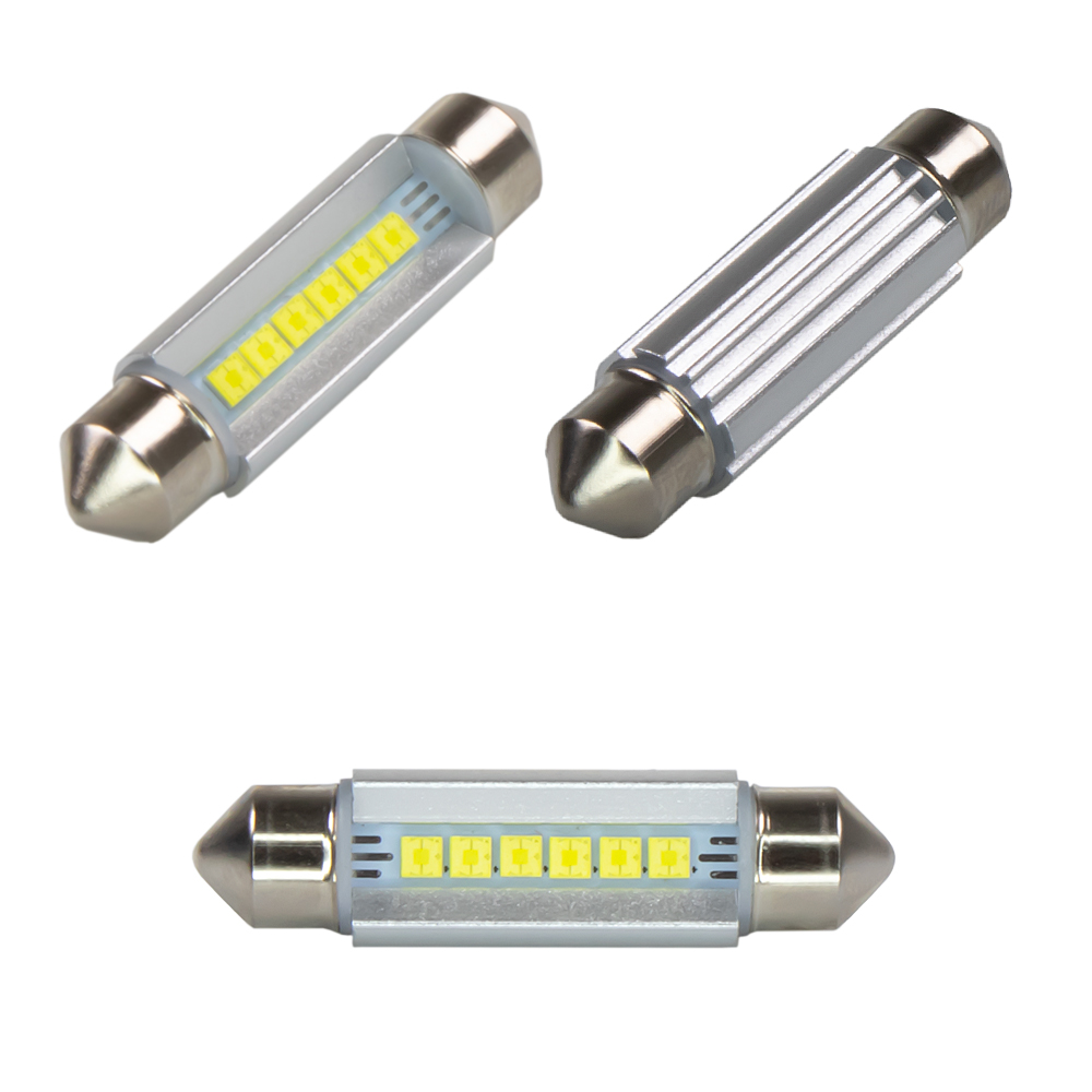 Moderní sufitová LED s integrovanou elektronikou CAN-Bus, vhodná pro vozidla s palubním napětím 9 V - 32 V a slouží především jako interiérové, obrysové nebo osvětlení SPZ. Tato LED žárovka typu sufit nahrazuje klasické skleněné trubičkové žárovky a díky vysoce svítivým LED čipům nabízí výrazně vyšší jas při nižší spotřebě energie. Integrovaný CAN-Bus obvod minimalizuje riziko chybových hlášení na palubním počítači u moderních vozidel. Rozsah napájení 9 V - 32 V umožňuje použití jak v osobních automobilech, tak v užitkových a nákladních vozidlech.