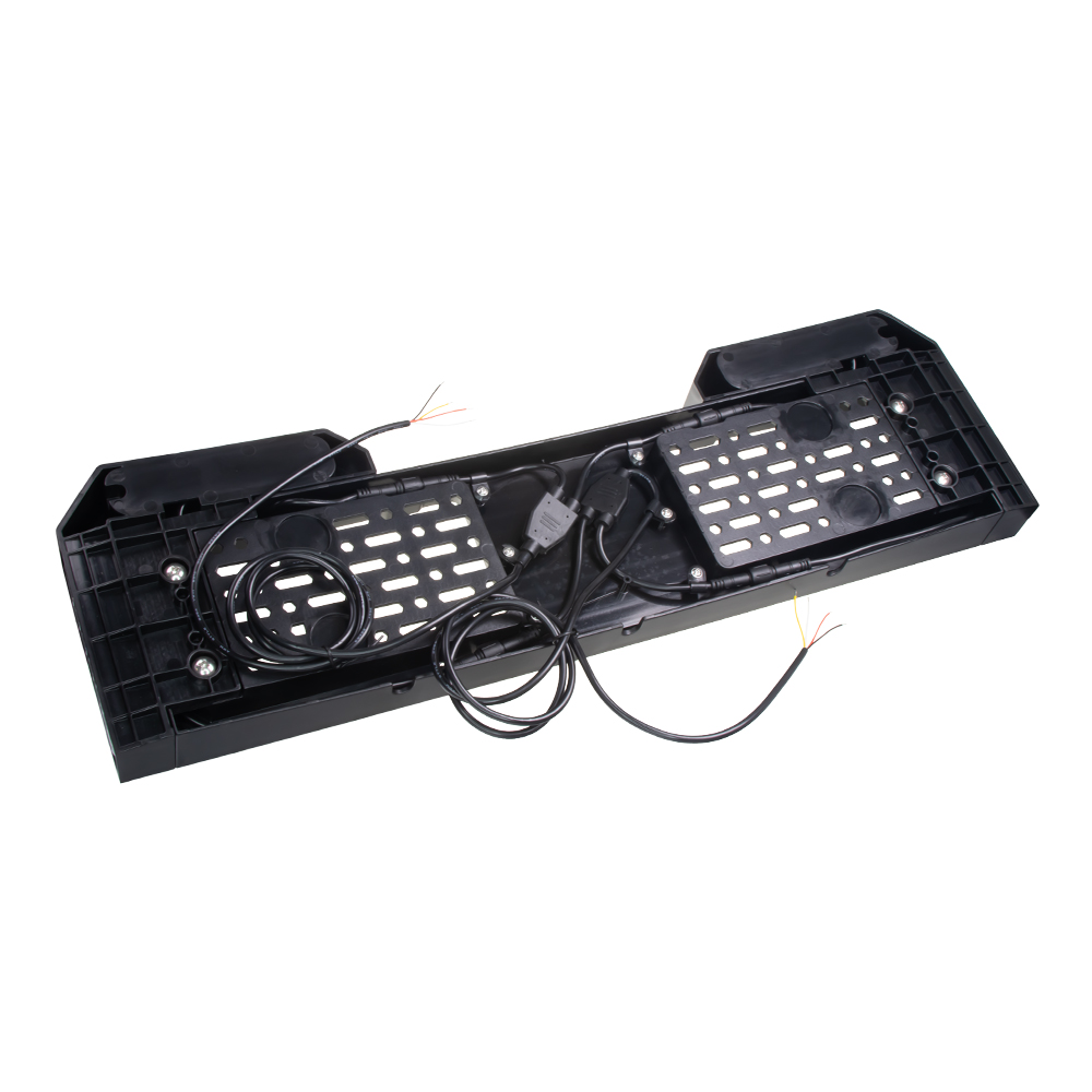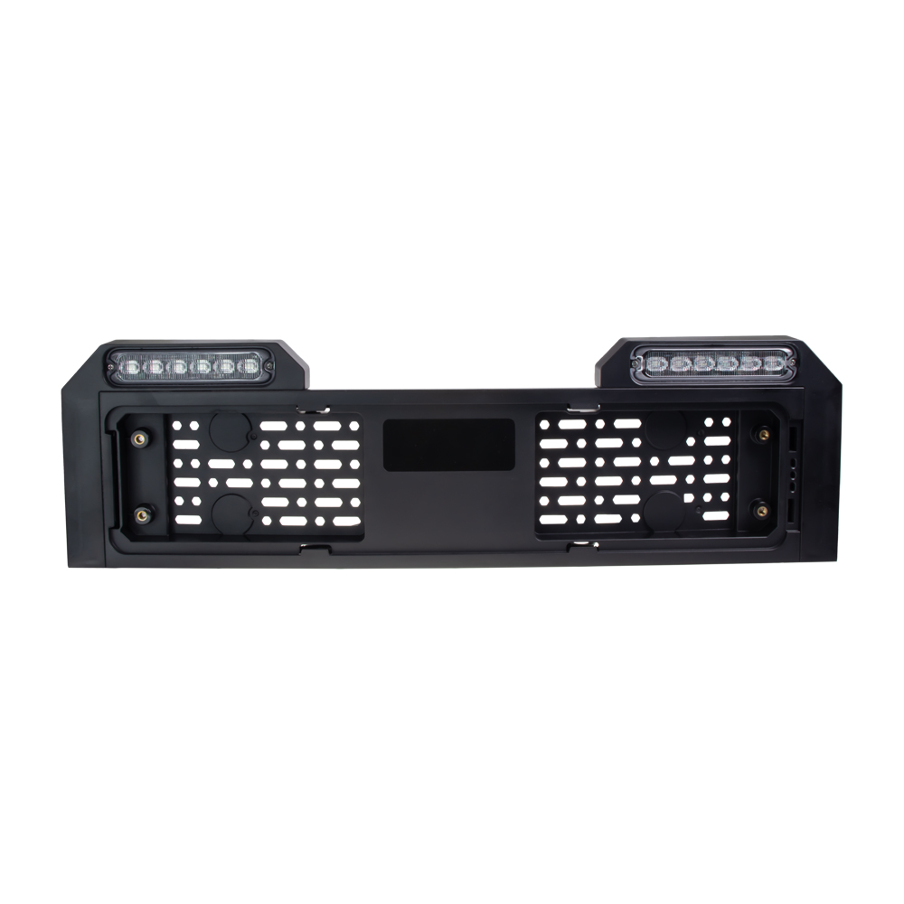 Podložka pod SPZ s vestavěnými modrými LED výstražnými světly.