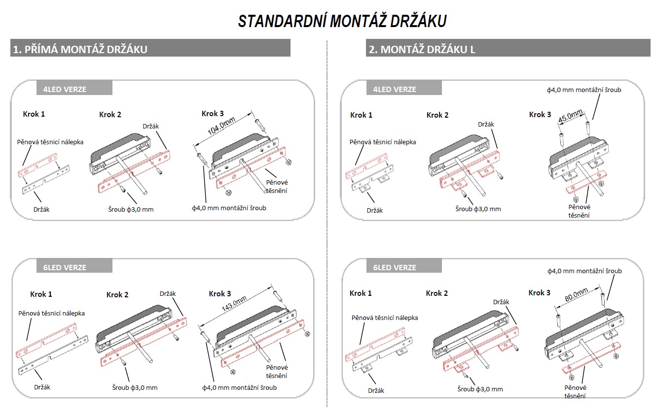 Technické parametry: • napájecí napětí 9 - 30 V • homologace ECE R10, R65 • 6x vysoce výkonné LED diody 3 W • kryt z tvrzeného polykarbonátu s UV ochranou • tělo z hliníku • minimální odběr proudu • 21 různých přednastavených režimů pro blikání • paměť zvoleného režimu • synchronizace/střídání s dalšími LED světly stejného typu (až 14 světel) • odolná konstrukce chránící proti vlhkosti a otřesům • vodotěsné IP69K • pracovní teplota: od - 30 °C do + 60 °C • rozměry 135 x 15 x 26 mm • montáž pomocí šroubů nebo přilepením