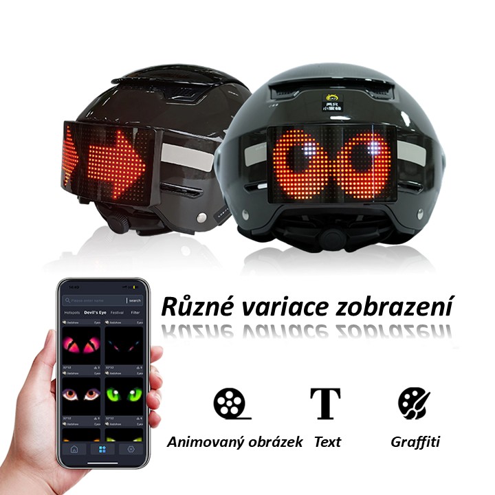Tento LED panel je navržen jako externí doplněk na motocyklovou helmu, který slouží jako zadní světlo, směrovky a výstražný signalizační prvek a zároveň jako dekorativní světlo ovládané přes APP. Oproti klasickým světlům na motorce či kole je umístěn výše – přímo na hlavě jezdce, což výrazně zlepšuje viditelnost pro ostatní řidiče, zejména v městském provozu nebo kolonách.