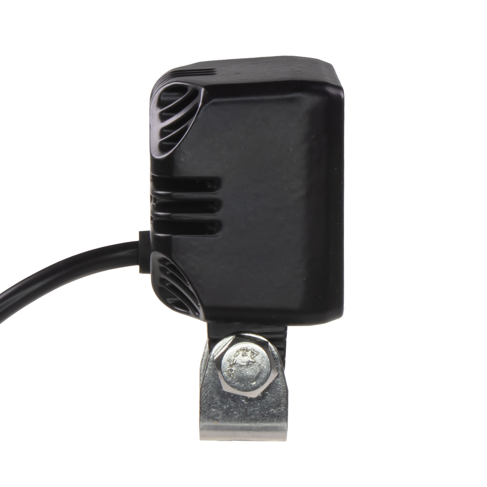 Technické parametry: • rozptýlený paprsek světla • barva světla: bílé světlo 6000-6500 K • oranžové poziční světlo (nebliká) • velmi odolný teplovodivý hliníkový obal v černé barvě • výkon LED: 15 W • počet LED: 2 + 2 (HEL2 + SMD) • Světelný tok 1600LM (1200LM efektivní) • napájecí napětí: 10 - 32 V • proudový odběr: 1,25 A / 12 V - 0,65 A / 24 V (bílá) • odolnost proti nárazu, vodotěsné: IP69K • uchycení pomocí nerezového držáku • vnější rozměry: 58,5 mm x 58,5 mm x 43,8 mm, výška včetně držáku 78,4 mm • homologace: ECE R10