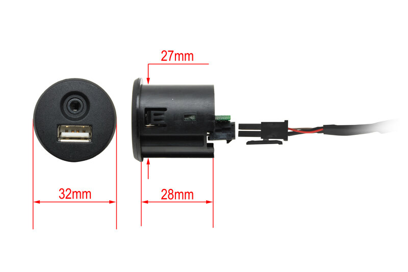 Adaptér pro připojení USB a AUX signálu, nahrazuje původní konektor v automobilu při použití aftermarket (dodatečně) instalovaného autorádia.