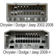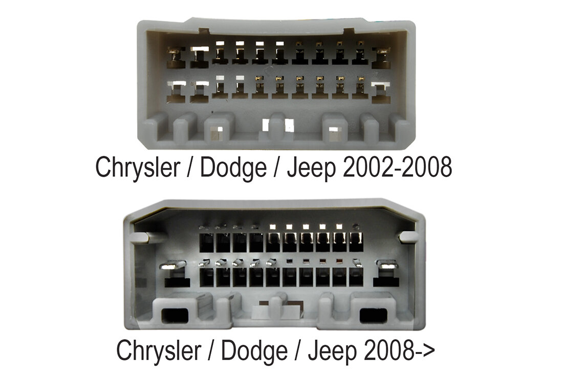 - kabelový svazek obsahuje dva typy konektorů automobily Chrysler 2002-2008 a pro automobily s novým typem konektoru vyrobené od roku 2008-