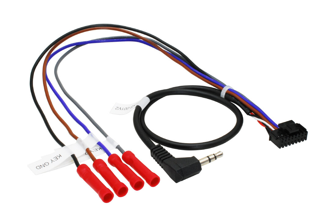 - univerzální propojovací adaptér pro jednotky se vstupem pro ovládání na volantu s JACK 3,5mm konektorem, volným vodičem i pro jednotky s funkcí "učení" funkcí tlačítek na volant