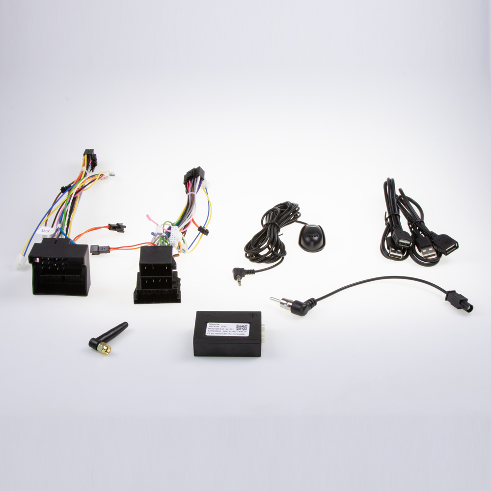 Instalační materiál a součásti: • 2x napájecí svazek s CAN modulem • 2x USB prodloužení • anténní redukce • 1x externí mikrofon