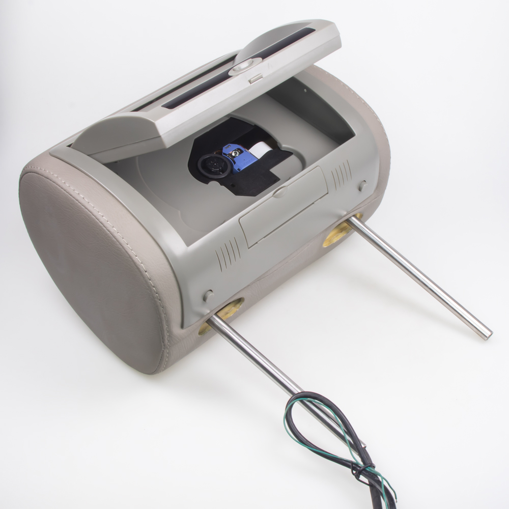 Kvalitní set LCD monitor 7" zabudovaný v šedé opěrce s DVD přehrávačem, čtečkou SD karet, USB portem a se zobrazením 16:9.