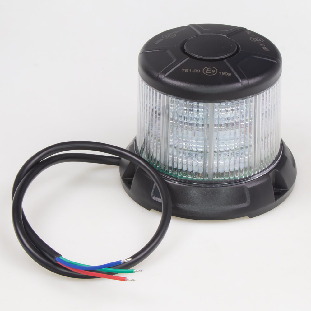 Profesionální modro-červený LED maják s výrazným výstražným efektem, speciální optika, velmi malé rozměry. Určen pro pevnou montáž.