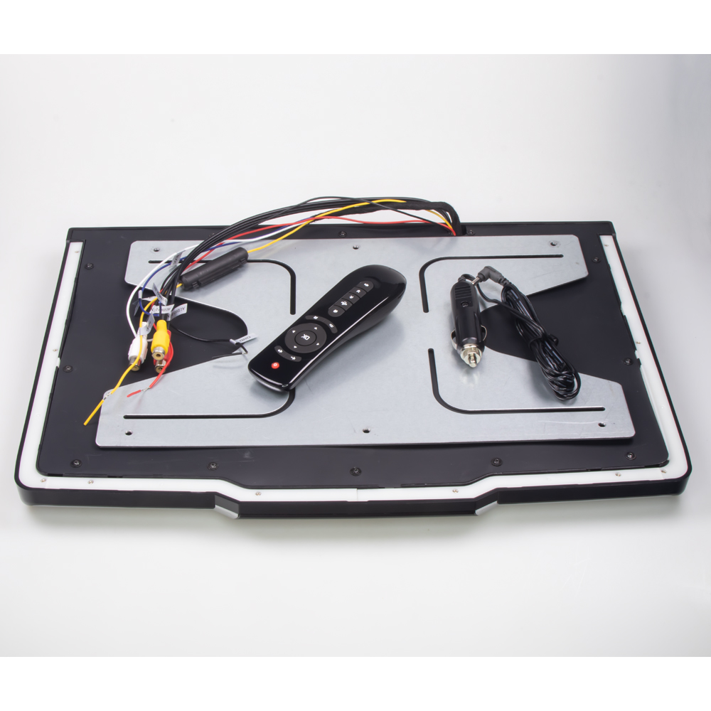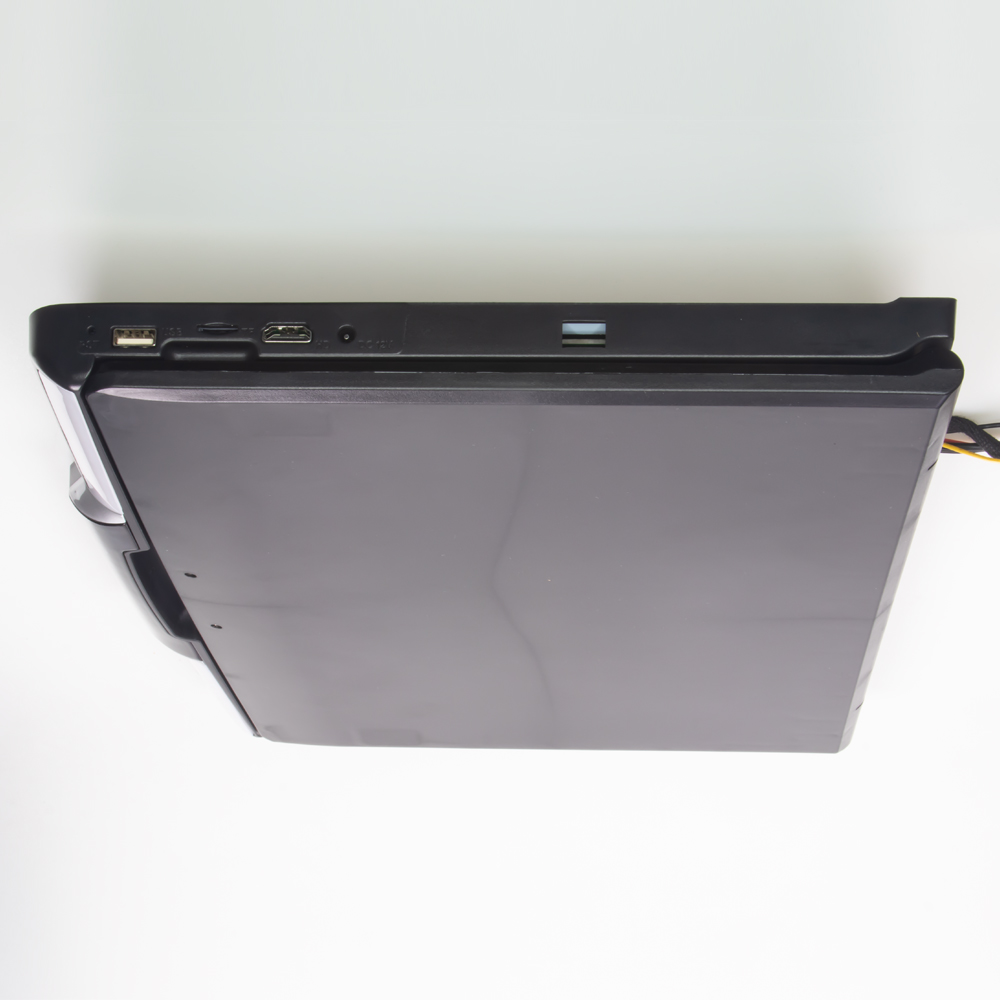 Nové zboží - vzorek, bez návodu v CZ Kvalitní plochý stropní výklopný LED LCD monitor 17,3" s OS. Android, HDMI vstupem , čtečkou micro SD a USB se zobrazením 16:9, dekorativní osvětlení (světle modrá). K monitoru je možné připojit libovolný externí zdroj kompozitního video signálu (např. DVD, video, kamera ....) + HDMI vstup. Monitor je pro pohodlné ovládání vybaven dálkovým ovládáním s pohybovým snímačem. Monitor je možno napájet i přes napájecí kabel s koncovkou do zapalovače (CL)(součást balení) Ambientní podsvícení.